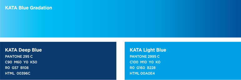 색상체계는 KATA를 차별화 시키는 중요한 수단이므로 지정된 색상을 통일성 있고 지속적으로 정확하게 사용하는 것이 중요하다. 별색사용을 원칙으로하며, 표현 매체(신문, 잡지, 패키지 등)에 따라 4원색(4 Color Process)으로 인쇄할 수 있다. 특히 4원색 규정에 따르는 경우에도, 명도, 채도 등 차이가 심할 수 있으므로 색상견본과 비교하여 최상의 표준색상을 얻도록 한다. RGB모드에서의 사용은 적용매체마다 색상차이가 생길 수 있으므로 제시된 색상을 기준으로 조정하여 사용하도록 한다.